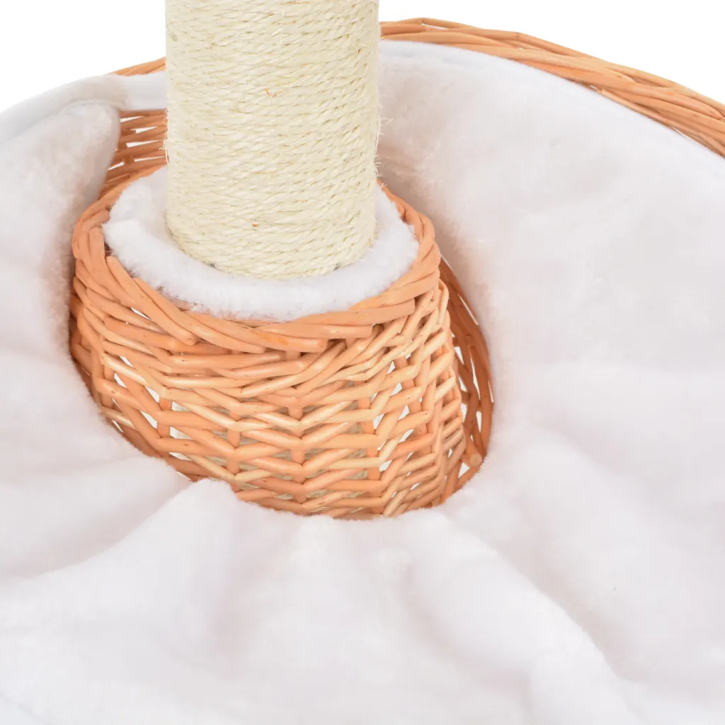 Käsitsi valmistatud pajupuidust kassimaja loob kassile ühe kompaktse torni, kus saab kraapida, ronida ja puhata. Sisalköiega kaetud kraapimispost aitab suunata küünte teritamise mööblilt eemale, samal ajal kui kaks hubast pajukorvi pakuvad turvalist magamiskohta. Tänu naturaalsele toonile sobitub kassipuu kergesti erinevate sisekujundustega ja on lihtne hooldada.