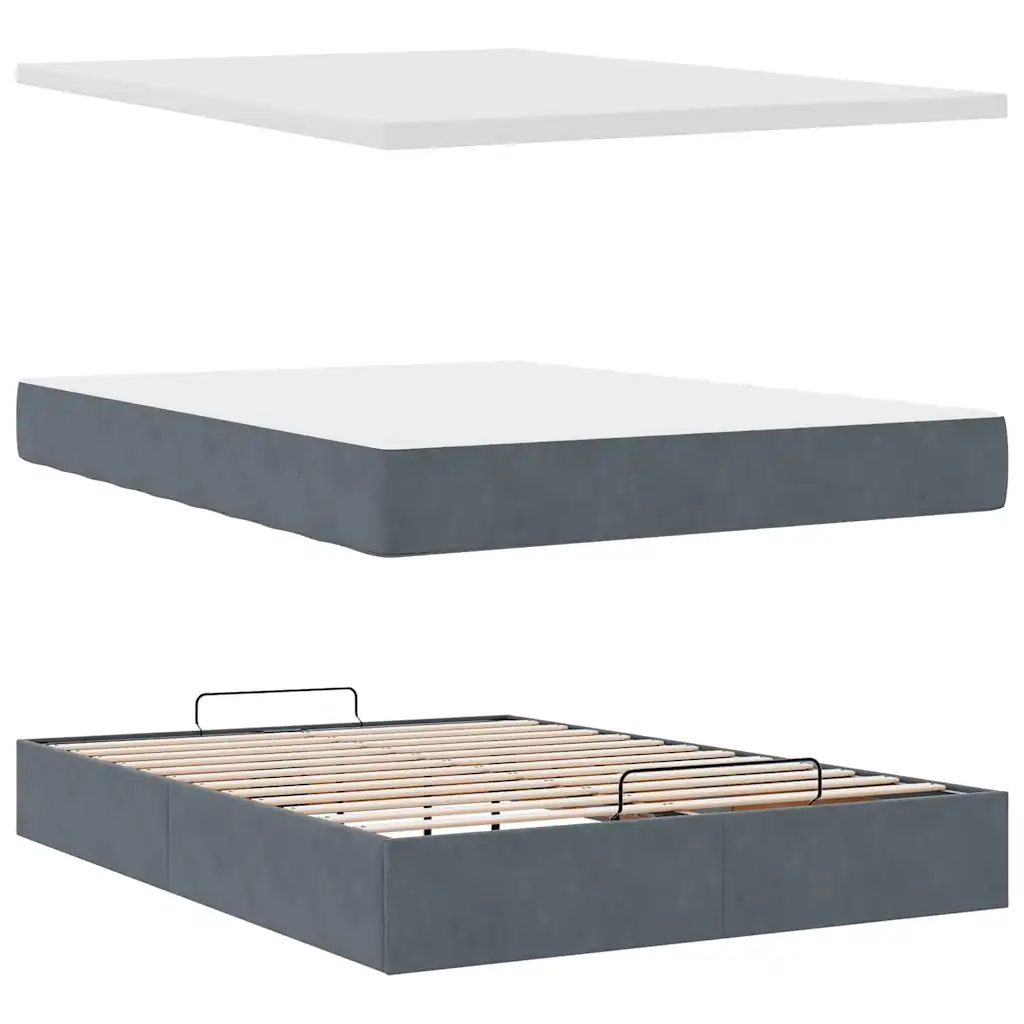 Kui soovite ühendada mugava une ja nutika hoiustamise, on see tumehallist sametist panipaigaga ottomani voodi praktiline lahendus. Ruumikas voodialune panipaik, hüdrauliline tõstemehhanism, ergonoomiline taskuvedrudega madrats ja hooldusmugav kattemadrats loovad tervikliku magamislahenduse, mis aitab hoida magamistoa korras ning pakub toetavat ja rahulikku und.