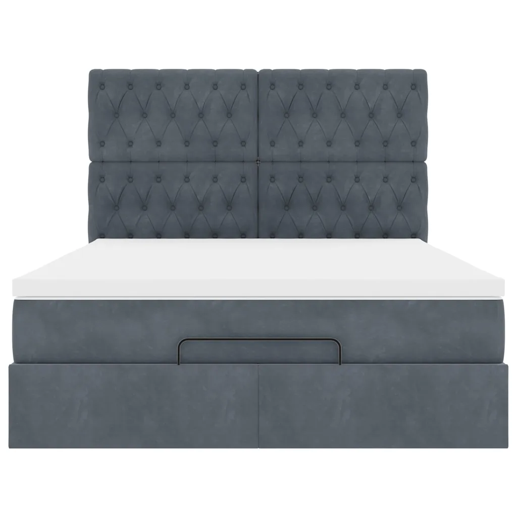 See 140 x 200 cm tumehallist sametist panipaigaga ottomani voodi koos taskuvedrudega madratsi ja kattemadratsiga ühendab mugava une ja nutika hoiustamise, aidates hoida magamistoa korras ka väiksemas ruumis.