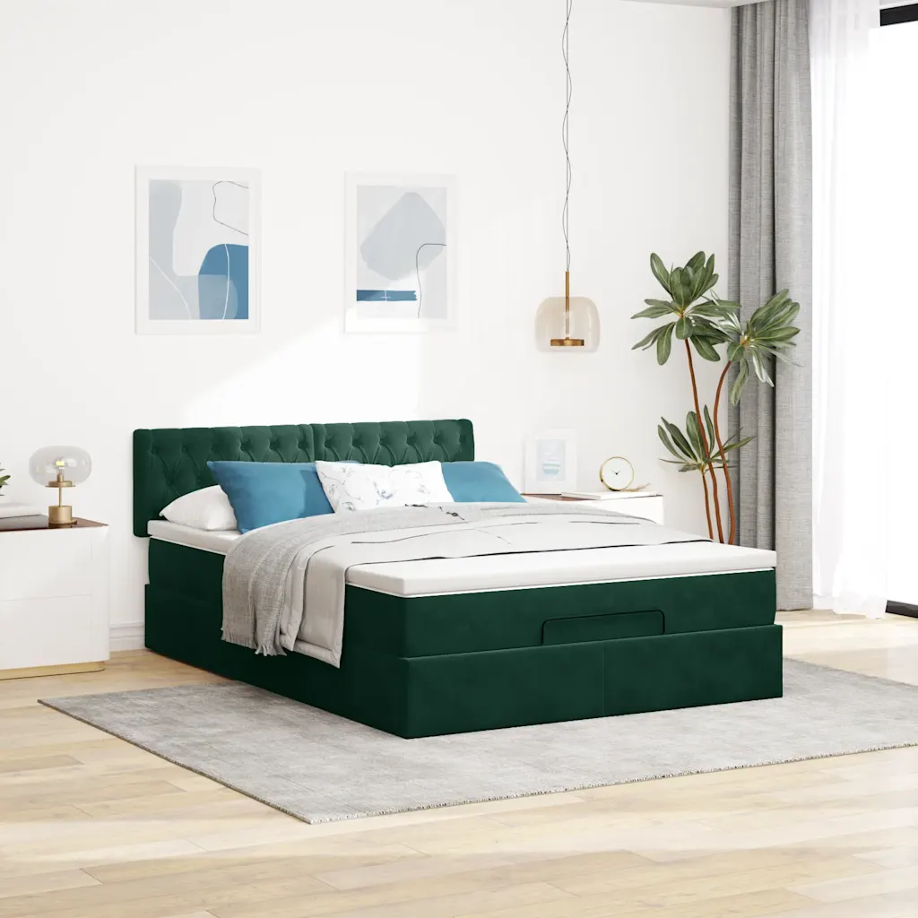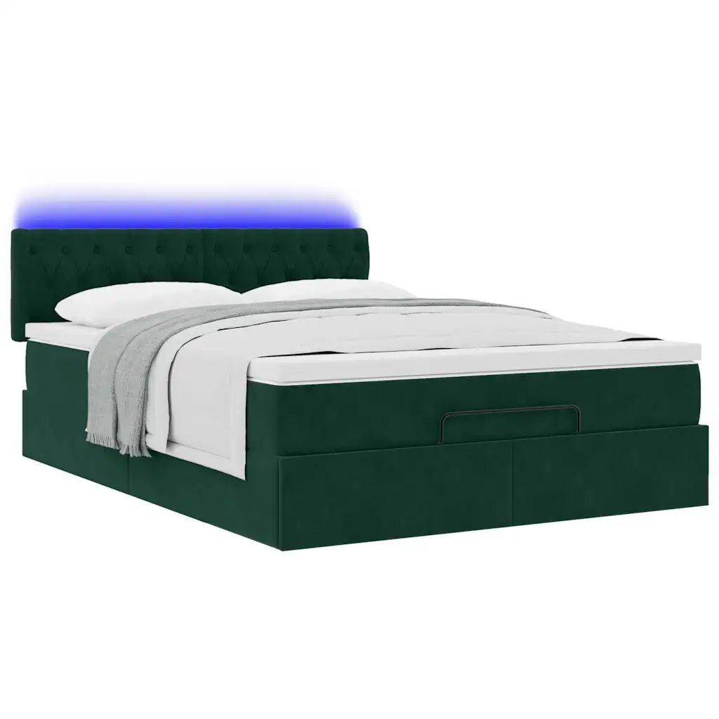 Kui otsite magamistuppa lahendust, mis ühendab endas mugava une, nutika voodialuse panipaiga ja kaasaegse LED‑valgustuse, pakub see tumeroheline sametist ottomani voodi tasakaalu funktsionaalsuse ja esteetika vahel. Komplektis olev taskuvedrudega madrats ja pealismadrats loovad toetava magamispinna, samal ajal kui peidetud panipaik aitab hoida ruumi korras ja organiseeritud.