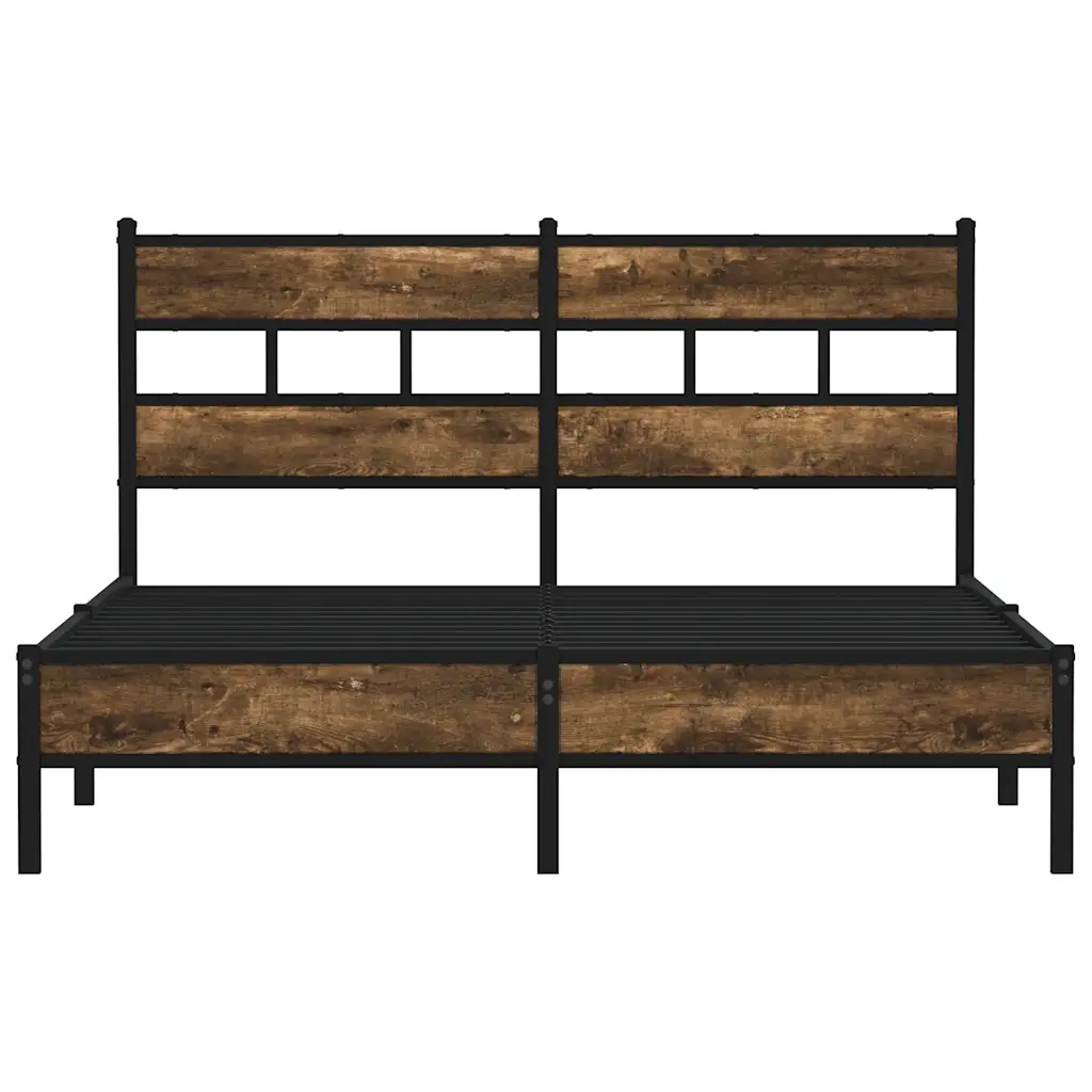 - Metallist ja puitlaastplaadist voodiraam peatsiga suitsutatud tamme toonis