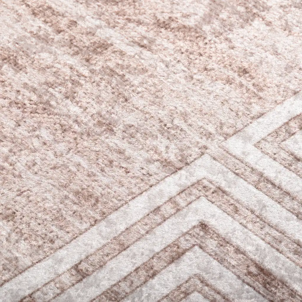 See beež pestav vaip mõõtudega 160 x 230 cm loob toas sooja ja rahuliku õhkkonna, kaitstes samal ajal põrandaid. Pehme digitaaltrükiga sametpind tundub jalge all mugav ning müra neelav struktuur aitab vähendada kaja elutoas, magamistoas või koridoris.