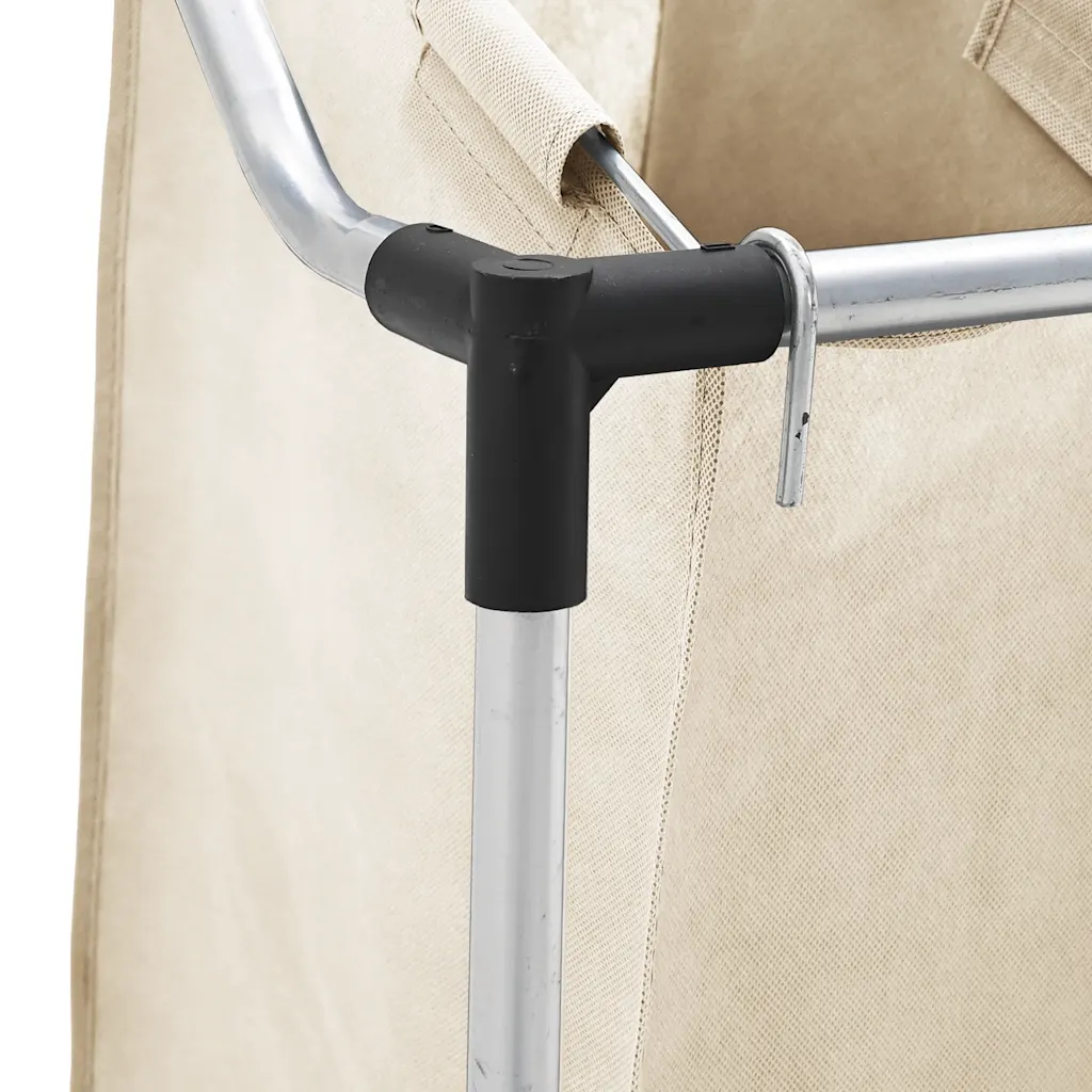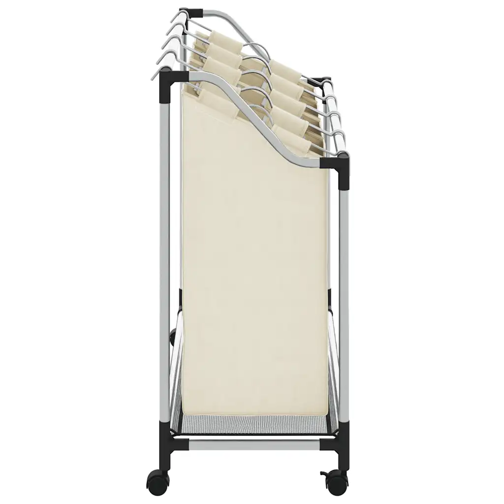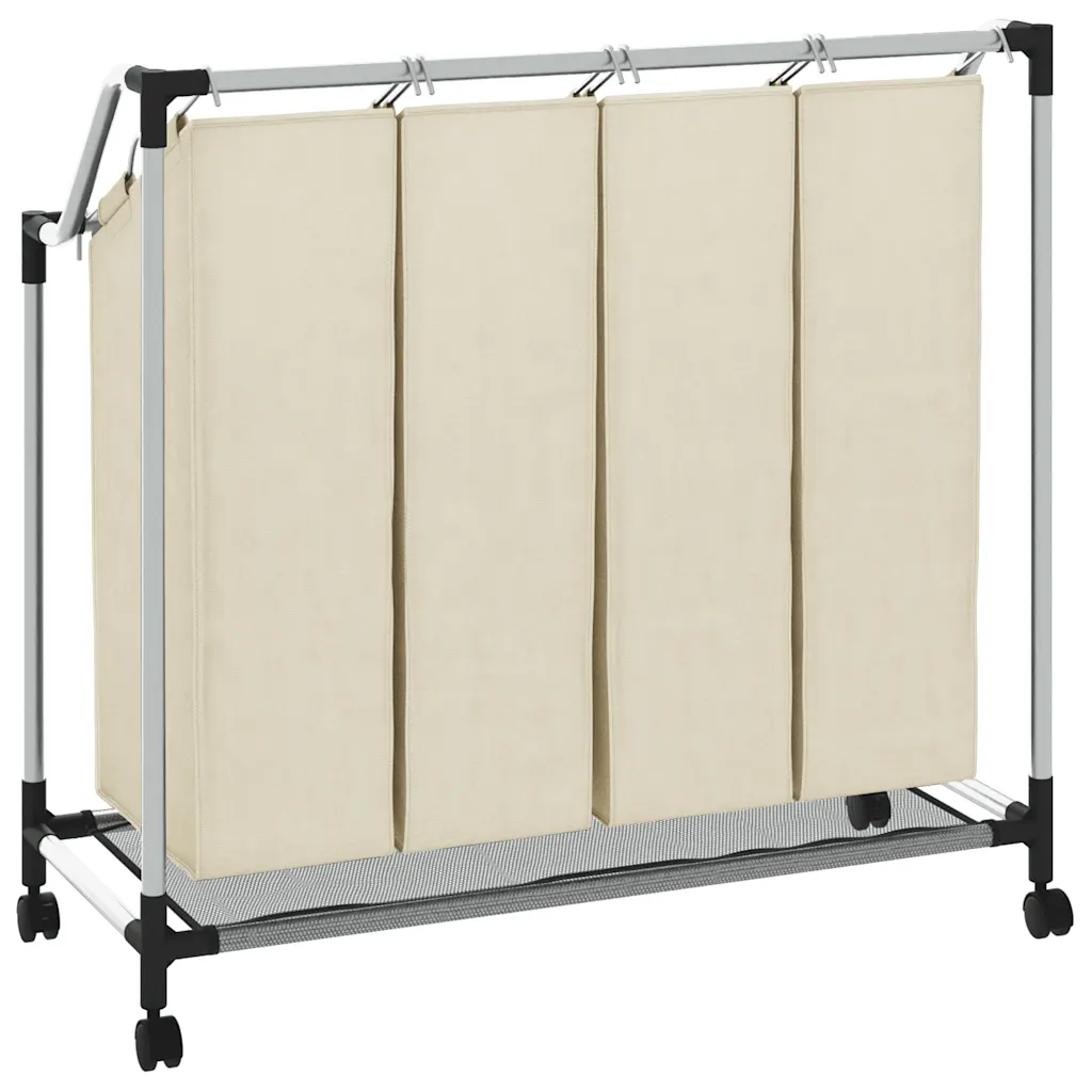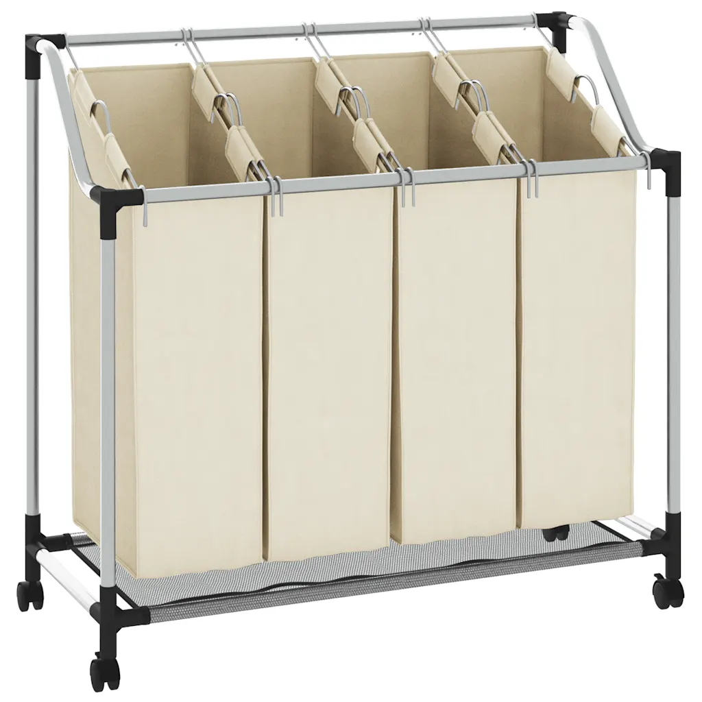 Kreemjasvalge pesusorteerija 4 kotiga aitab hoida musta pesu organiseeritult ja lihtsasti liigutatavaks. See sobib hästi pesuruumi, abiruumi või garderoobi, kus on vaja pesu mugavalt sorteerida, hoiustada ja transportida pesumasinani.