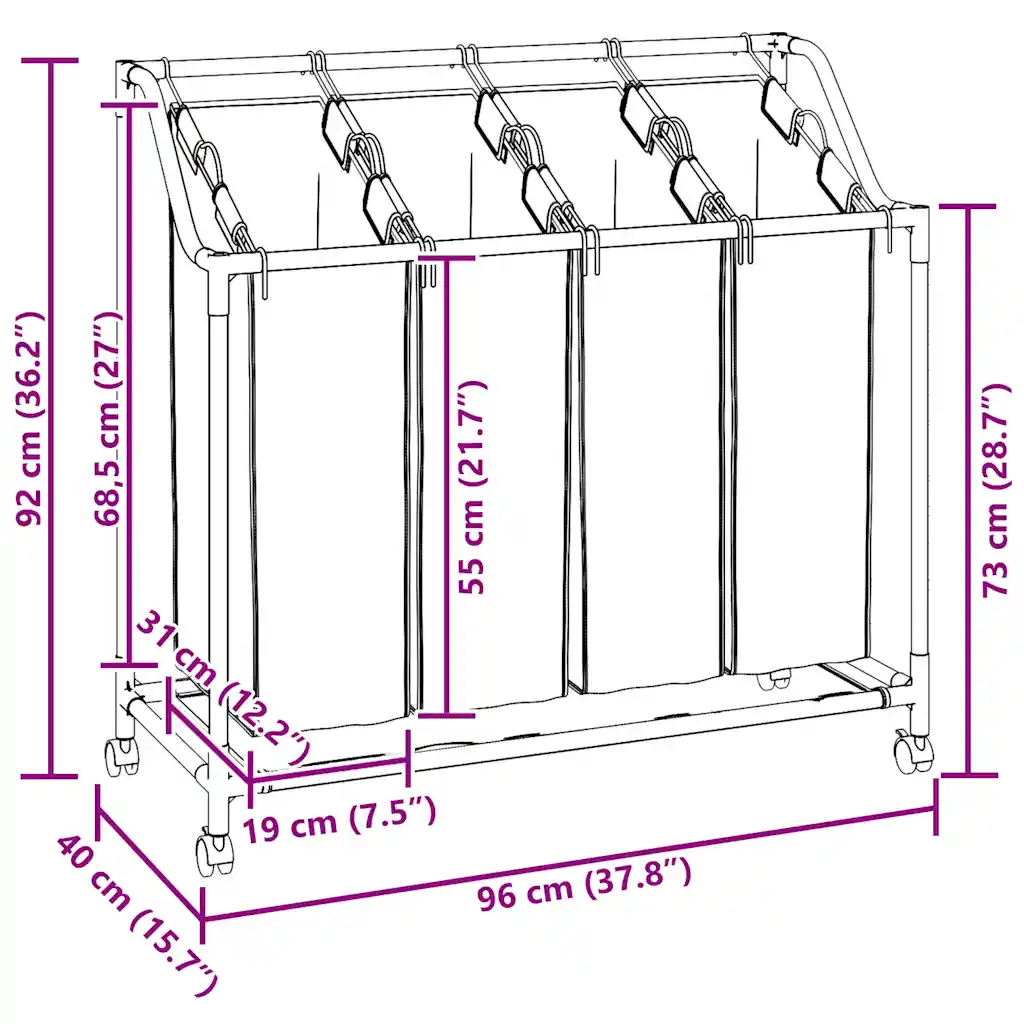 See pesusorteerija sobib neile, kes soovivad hoida pesuruumi korrastatuna ja vähendada musta pesu kogunemist eri nurkadesse. Neli eraldi kotti, ratastel raam ja kuni 20 kg kandevõime muudavad pesu sorteerimise ja transportimise lihtsaks ning praktiliseks lahenduseks nii väikestes kui ka suuremates majapidamistes.