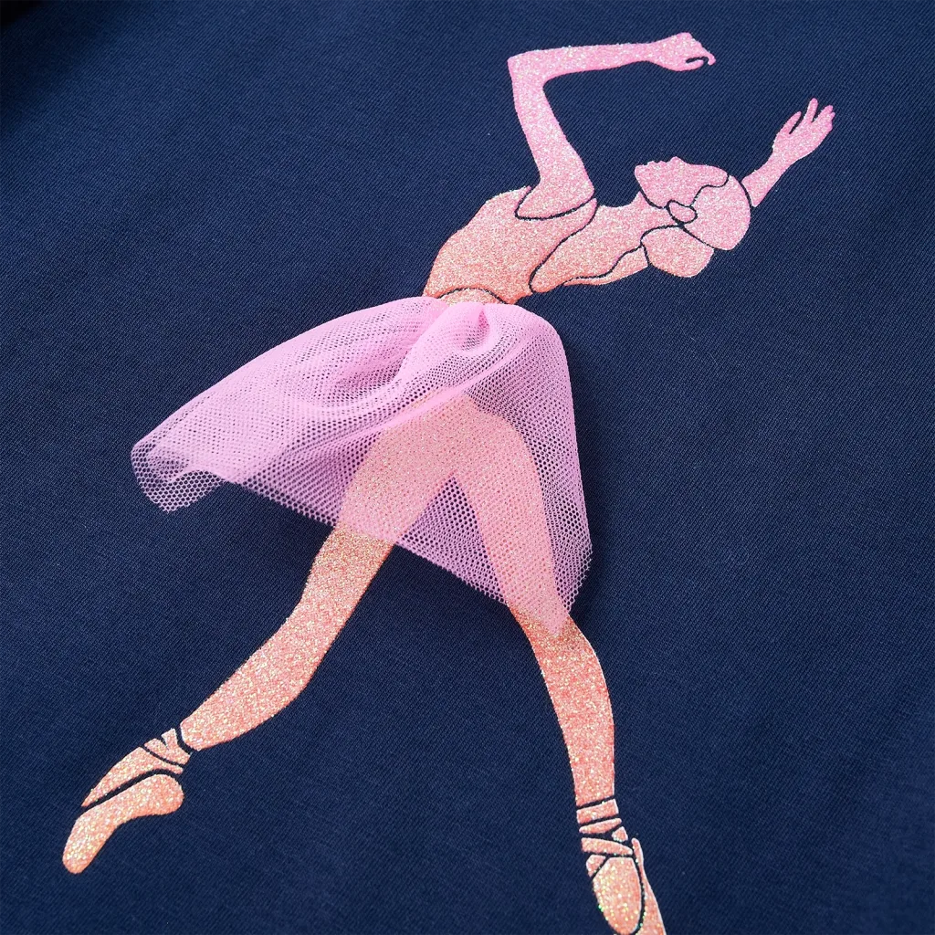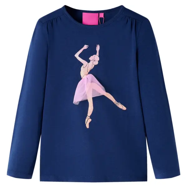 See pikkade varrukatega lastesärk on loodud igapäevaseks kandmiseks, pakkudes lapsele liikumisvabadust ja mugavust. Tumesinisele särgile lisab mängulisust tüllseelikuga baleriinitrükk, mis meeldib eriti tantsu- ja balletiarmastajatele. Pehme kangas, milles on 95% puuvilla ja 5% elastaani, on nahasõbralik ja hingav ning sobib hästi tundlikule nahale.