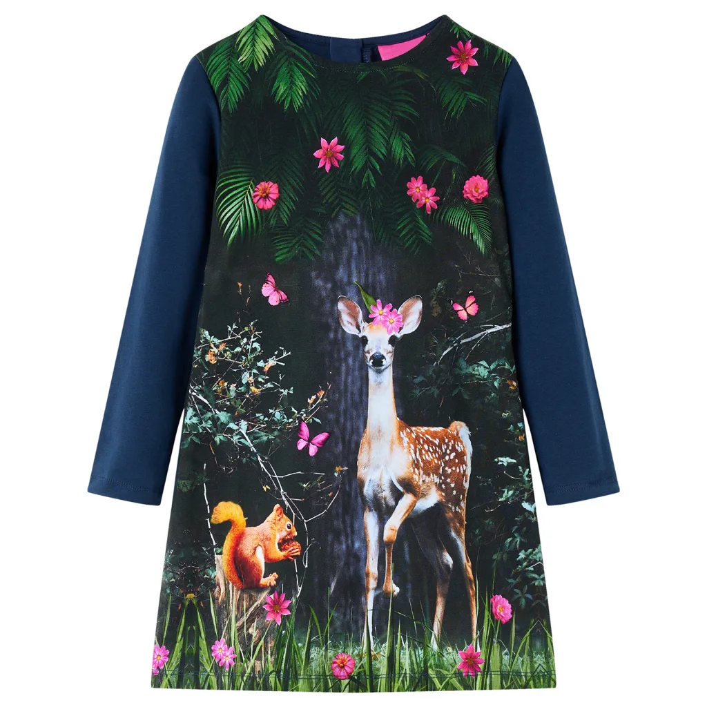 Tumesinine laste kleit hirvepildiga mugavaks igapäevaseks kandmiseks