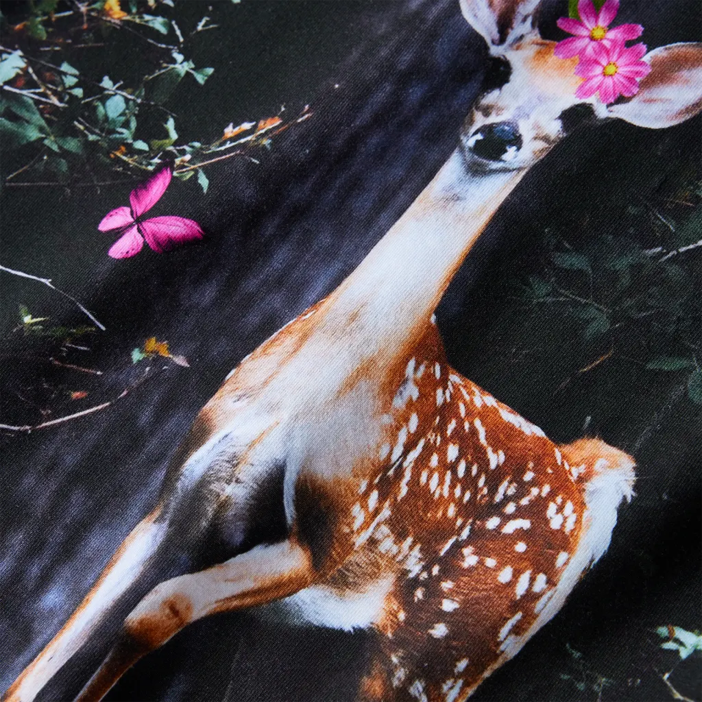 - Hirvepildiga esiosa annab kleidile mängulise ja meeldejääva välimuse, mis meeldib lastele.