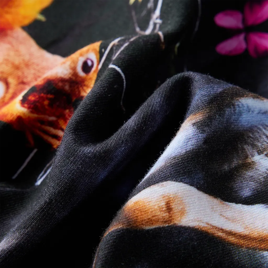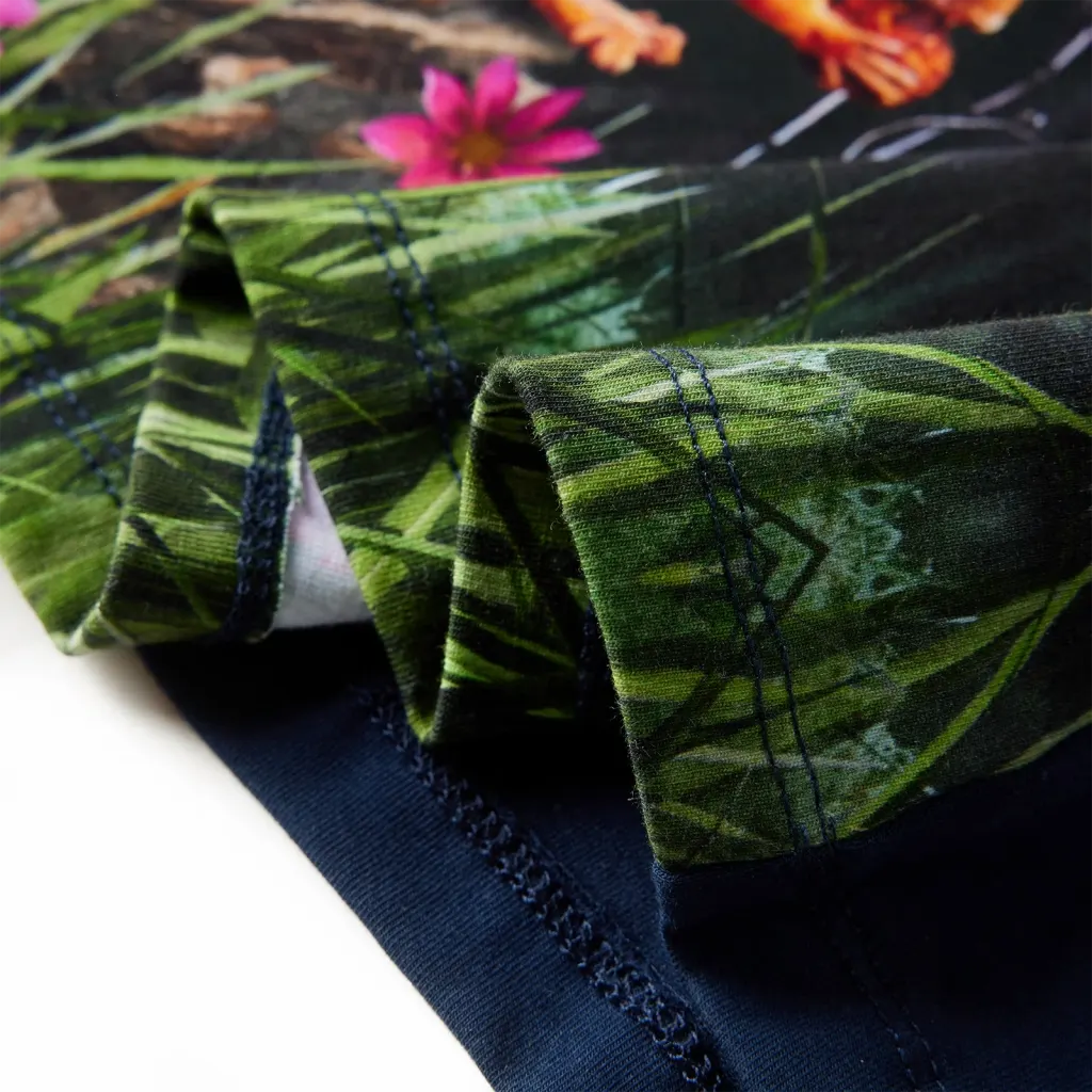 See pikkade varrukatega laste kleit on mõeldud 7–8-aastastele lastele, pakkudes mugavust nii koolipäevadeks kui vaba aja tegevusteks. Esiosa värvikas loodusteemaline hirvepilt muudab kleidi visuaalselt eriliseks, samas kui pehme puuvilla ja elastaani segu tagab hea istuvuse ja liikumisvabaduse. Tumesinine värv sobib hästi igapäevaseks kandmiseks ning on lihtne sobitada teiste rõivastega.