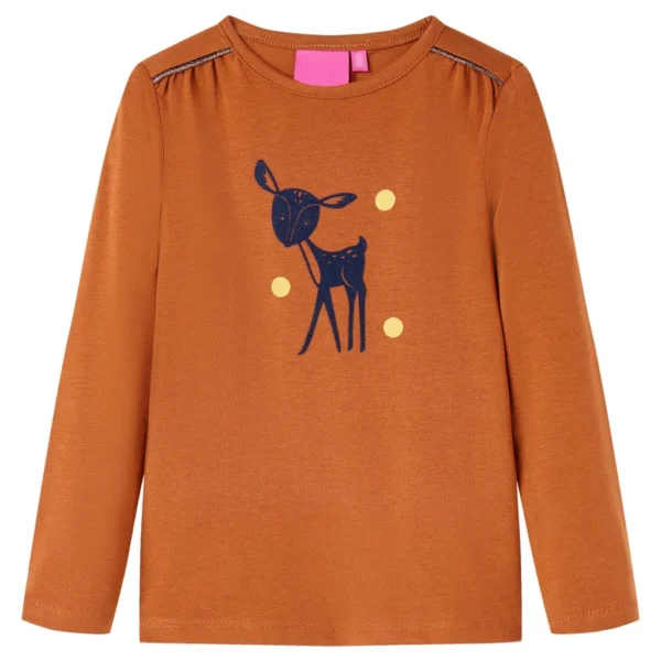 See konjakipruun pikkade varrukatega lastesärk on loodud 1,5–2 aastastele lastele, pakkudes mugavust nii toas kui õues. Pehmest 95% puuvilla ja 5% elastaani segust kangas on nahasõbralik, veniv ja hingav, et laps saaks vabalt liikuda. Esikülje flokeeritud hirvekujundus annab särgile mängulise ja lastesõbraliku ilme.