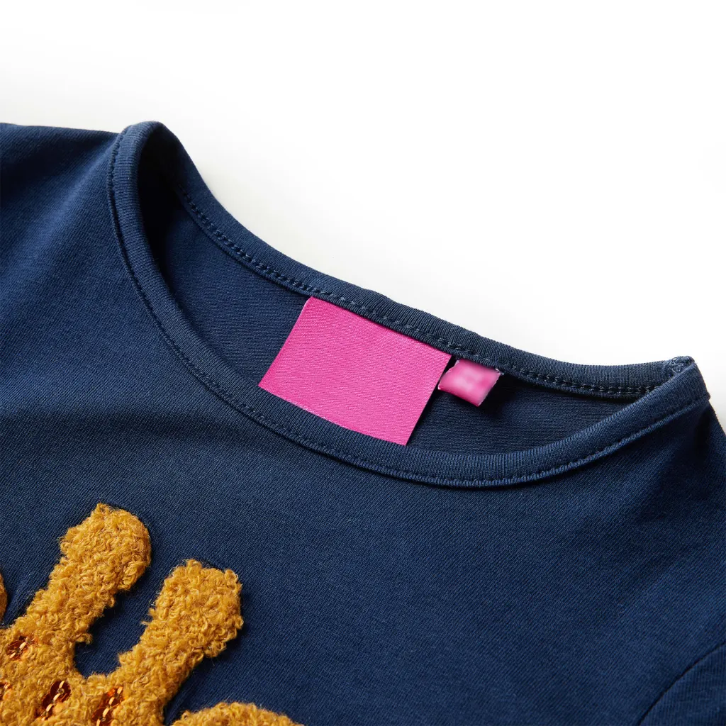 See tumesinine pikkade varrukatega lastesärk on mõeldud 9–10 aastastele lastele, suurusele 140. Ees on suur ja armas kaelkirjaku kujundus, mis lisab särgile mängulisust ja muudab selle kiiresti lemmikuks nii kodus kui koolis.