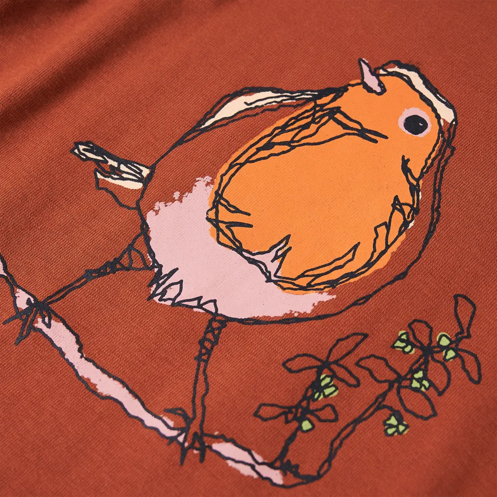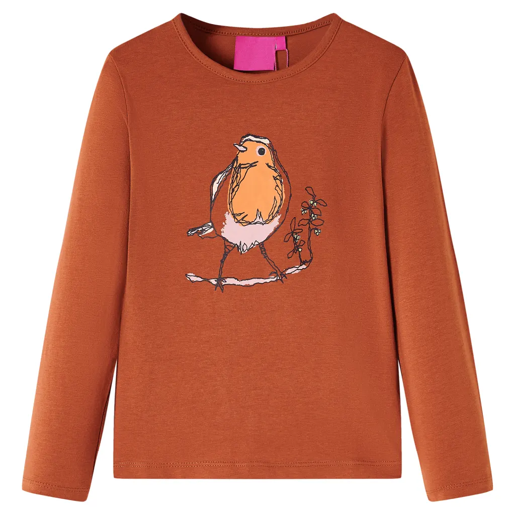 Miks valida pikkade varrukatega lastesärk linnupildiga, konjakipruun, suurus 104 (3–4 a)?