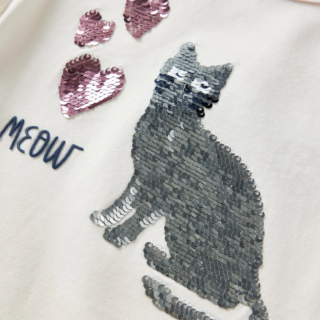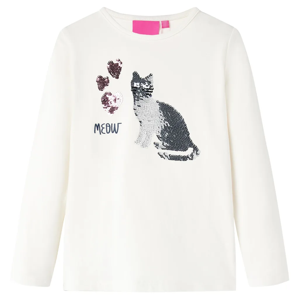Miks valida pikkade varrukatega lastesärk litritega kassikujundusega, ekrüü, suurus 116?