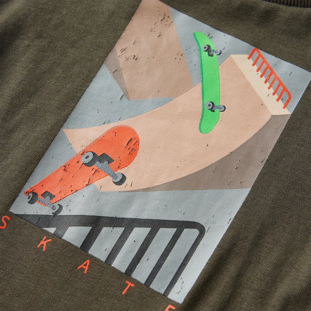 Miks valida pikkade varrukatega khaki lastesärk rula trükiga?