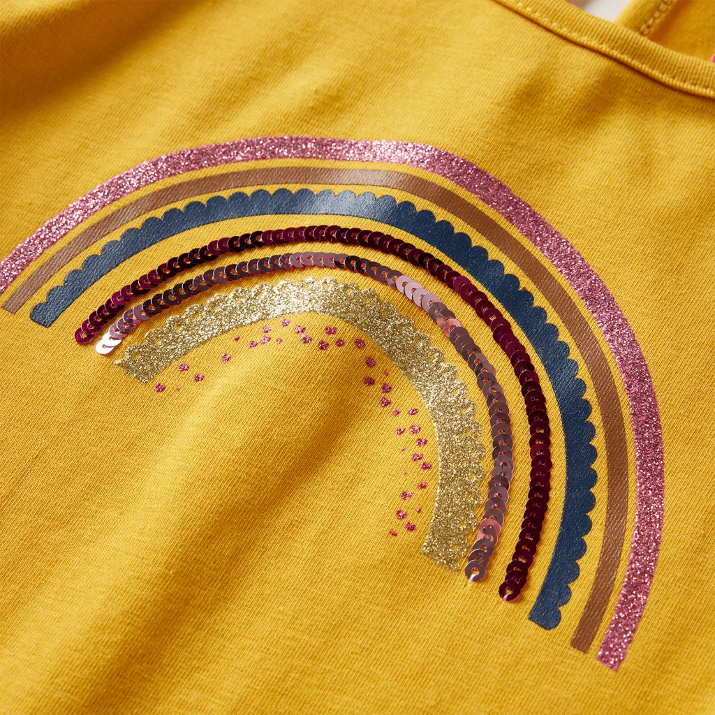• Ookrivärvi kangas vikerkaarekujundiga lisab lapse riietusele rõõmsa värvilaigu ja sobib hästi erinevate pükste või seelikutega.