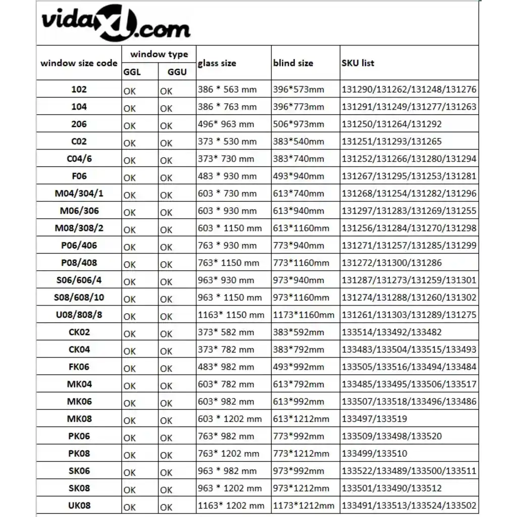 - Vali õige suurusekood CK04 ruloo sobib ainult akendele suurusekoodiga CK04 ega ühildu VELUX akna suurusekoodiga C04/6.