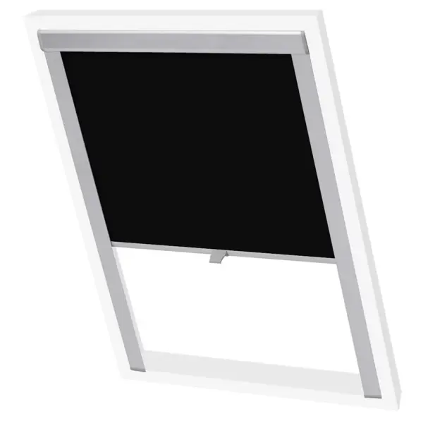 - Must pimendav katuseakna ruloo alumiiniumraamiga mõõtudega 613 x 740 mm (P x L).