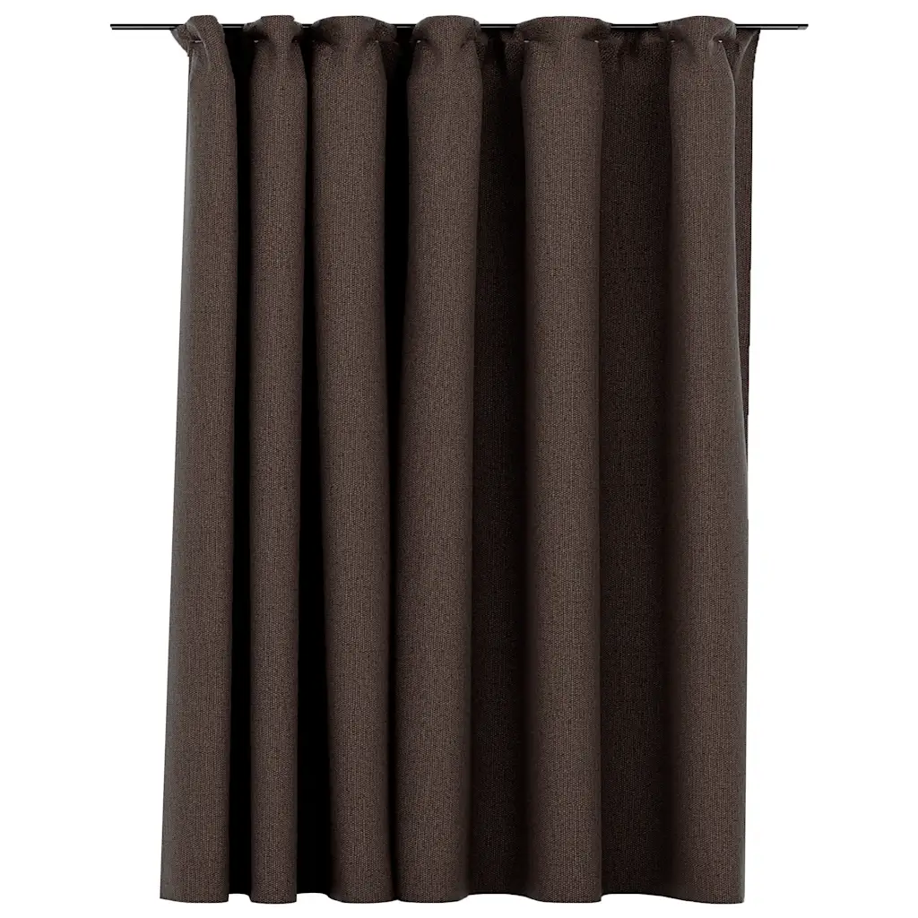 See linase välimusega pimendav kardin loob elutoas, magamistoas ja teistes ruumides mõnusa hubasuse, sest aitab vähendada sissetulevat valgust ja tagada privaatsuse. Pruunikashall toon sobitub neutraalse ja kaasaegse sisekujundusega ning suur mõõt 290 x 245 cm katab hästi ka laiemad aknad või rõduuksed. Valmistatud masinpestavast 100% polüesterkangast, mida on lihtne hooldada ja mis hoiab ilusa välimuse pikema aja vältel.