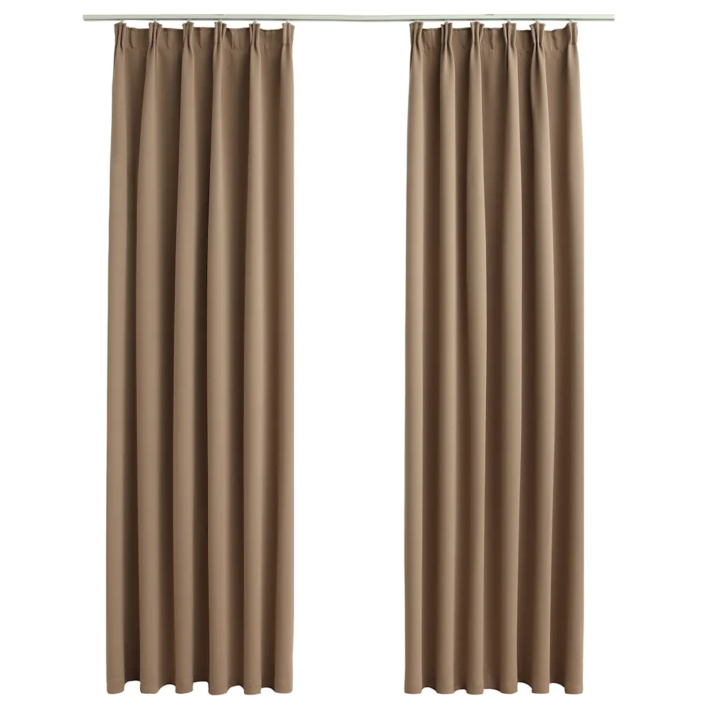 - 2 hallikaspruuni pimendavat kardinat mõõtudega 140 x 245 cm (L x K)