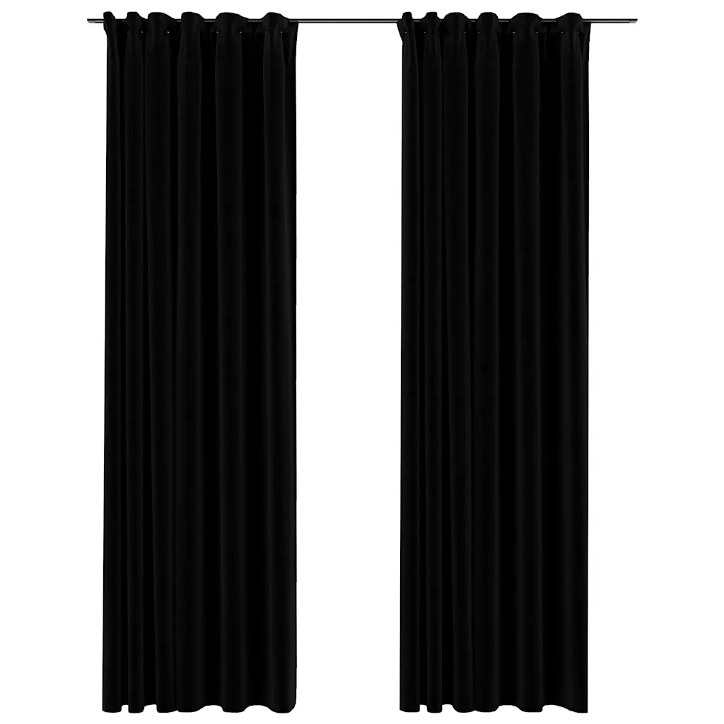 Need mustad pimendavad kardinad aitavad luua magamistoas, elutoas või kontoris rahuliku ja hämarama keskkonna, vähendades tõhusalt sissepääsevat valgust ja parandades privaatsust. Linase välimusega 100% polüesterkangas langeb ilusasti ning sobitub paljude sisustusstiilidega, samas on materjal vastupidav ja masinpestav. Komplekt sisaldab kahte kardinat 140 x 245 cm, mis kinnituvad hõlpsasti kardinapuule metallkonksudega.