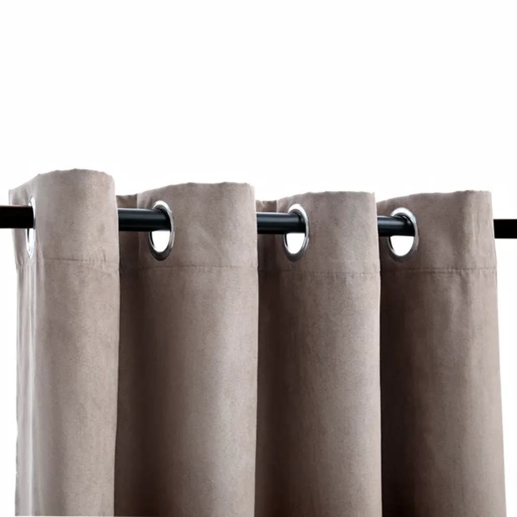 Komplektis on kaks pimendavat kardinat mõõtudega 140 x 175 cm, pruunikashalli värvitooniga ja metallrõngastega ülaosaga.