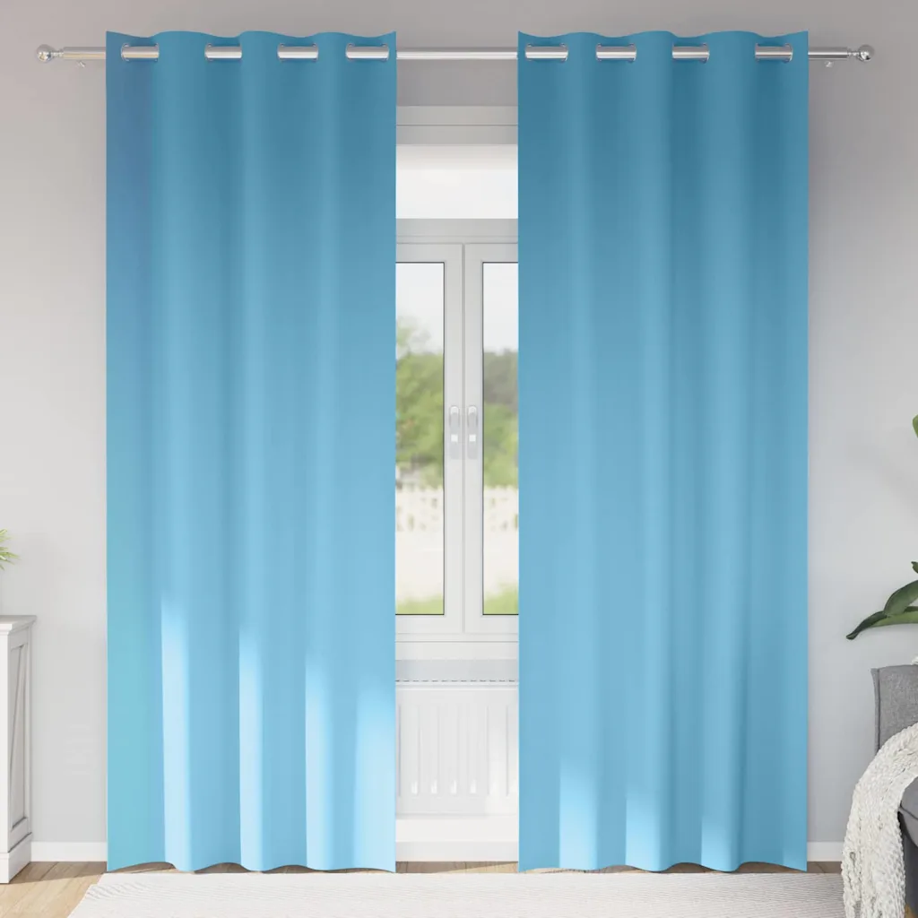 - 2 x helesinine pimendav kardin mõõduga 260 x 140 cm