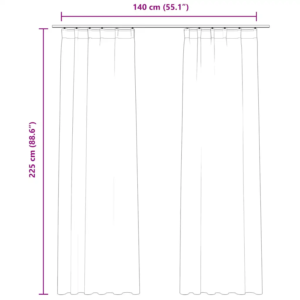 - Komplektis 2 kardinat – saad ühesuguse paarina katta terve aknaava; iga kardina mõõdud on 140 x 225 cm (laius x kõrgus).