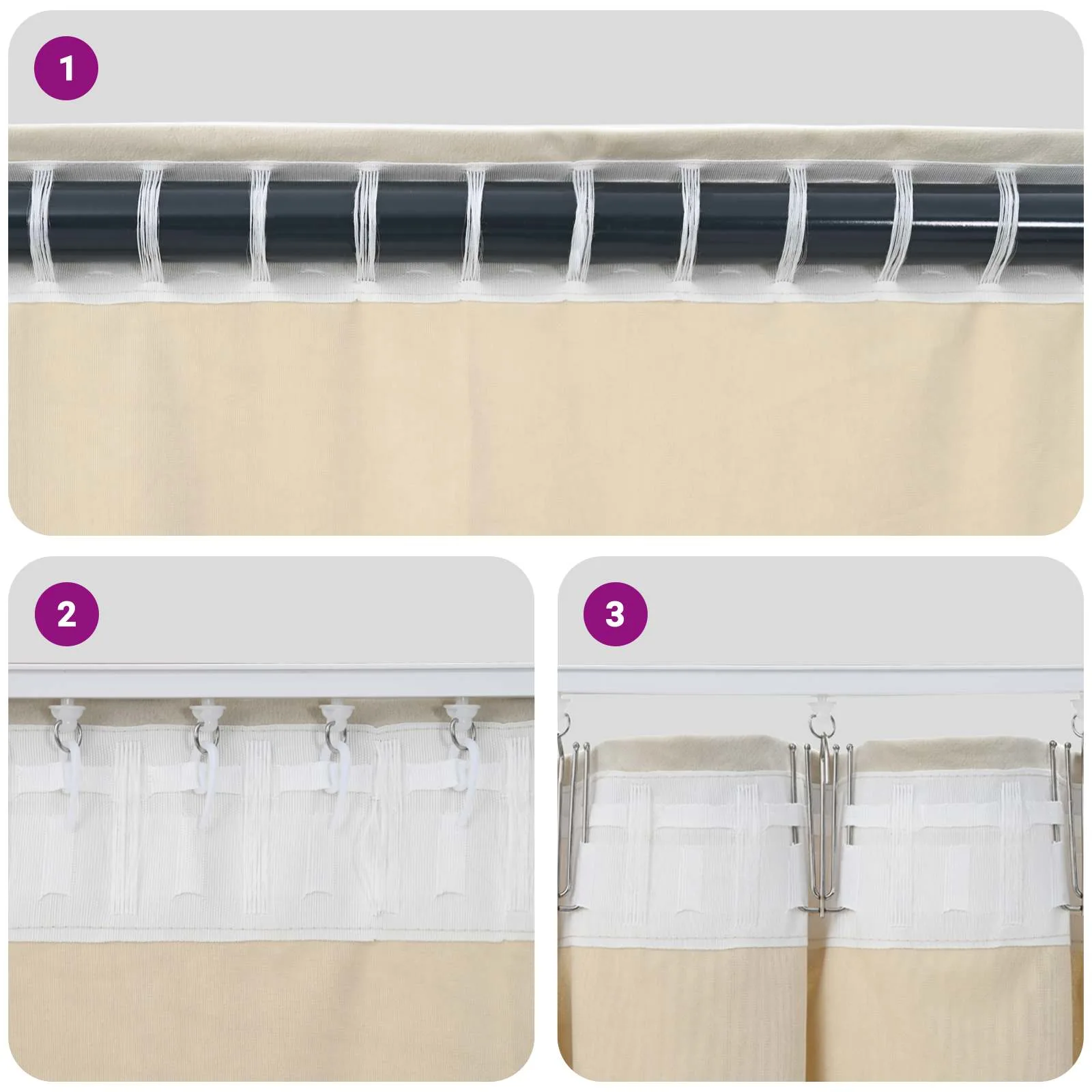 - Lihtne riputada Kardinad on varustatud kardinapaelaga, mis võimaldab need mugavalt kardinapuule või siinidele kinnitada.