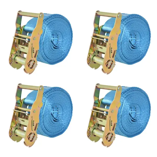 - 4 x pingutitega koormarihm, sinine, polüestrist, pikkus 6 m, laius 38 mm, maksimaalne kinnitusvõime 2 tonni iga rihma kohta.