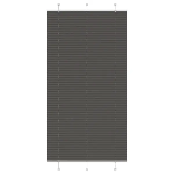 - Plisseeritud aknaruloo musta värvi, mõõtudega 105 x 200 cm, kanga laius 104,4 cm.