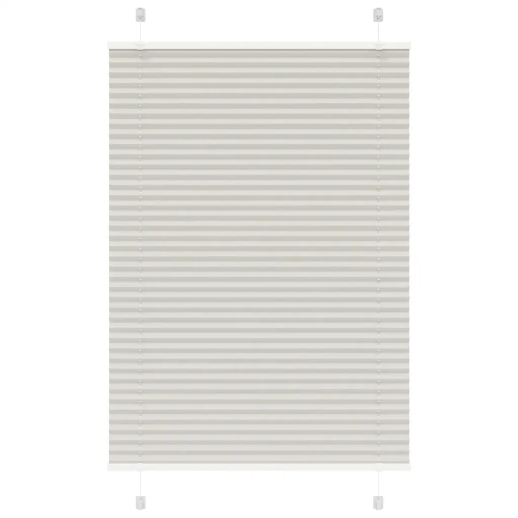 Privaatsust ja valguse kontrolli pakkuv helehall plisseeritud ruloo