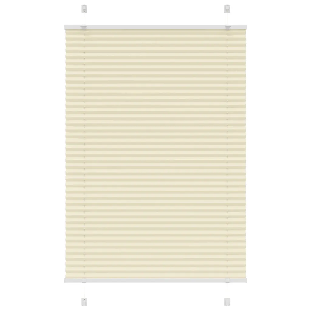 See kreemjasvalge plisseeritud ruloo suurendab ruumi privaatsust ja kaitseb pimestava päikesevalguse eest, sobides hästi elutuppa, magamistuppa või kontorisse. Mitte täielikult pimendav volditud kangas laseb sisse meeldivat päevavalgust, kuid varjab vaate aknast.