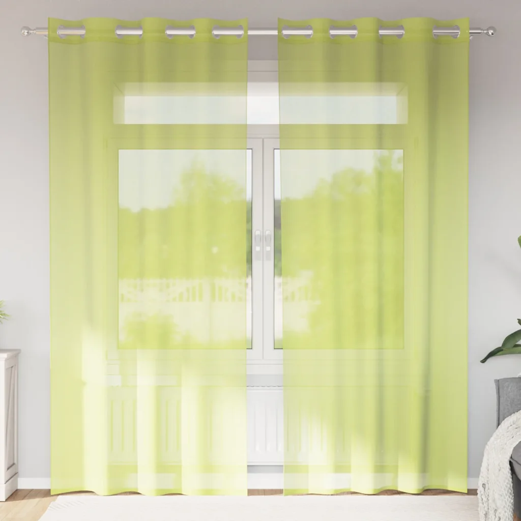 Need õunarohelised voile-kardinad loovad ruumis kerge ja avatud tunde, pehmendades samal ajal otsest päikesevalgust. Poolläbipaistev kangas aitab säilitada privaatsust, jättes aknaala siiski meeldivalt valgusküllaseks elutoas, magamistoas või muudes eluruumides.