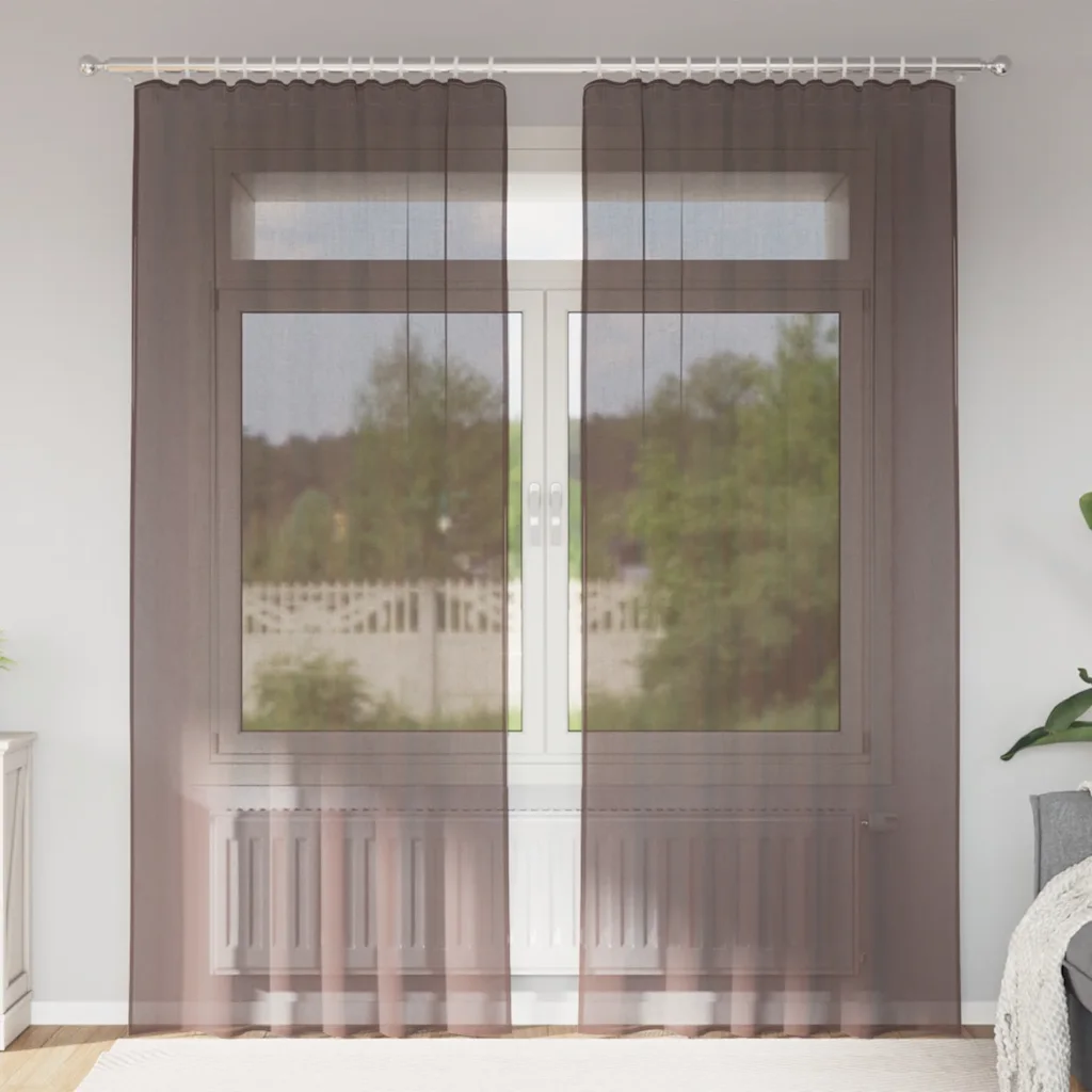 - 2 x pruun voile-kardin, mõõtudega 140 x 225 cm (laius x kõrgus)