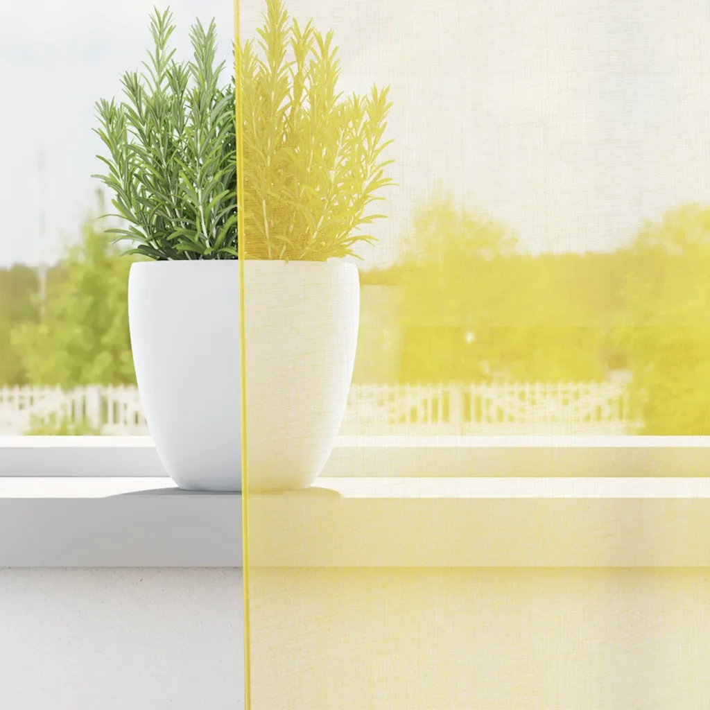 See kollane voile kardinapaar aitab luua ruumi, kus on palju loomulikku valgust, kuid puudub otsene pimestamine. Poolläbipaistev kangas pehmendab päikesevalgust, lisades interjöörile kerget ja õhulist ilmet ning pakkudes samal ajal veidi privaatsust.
