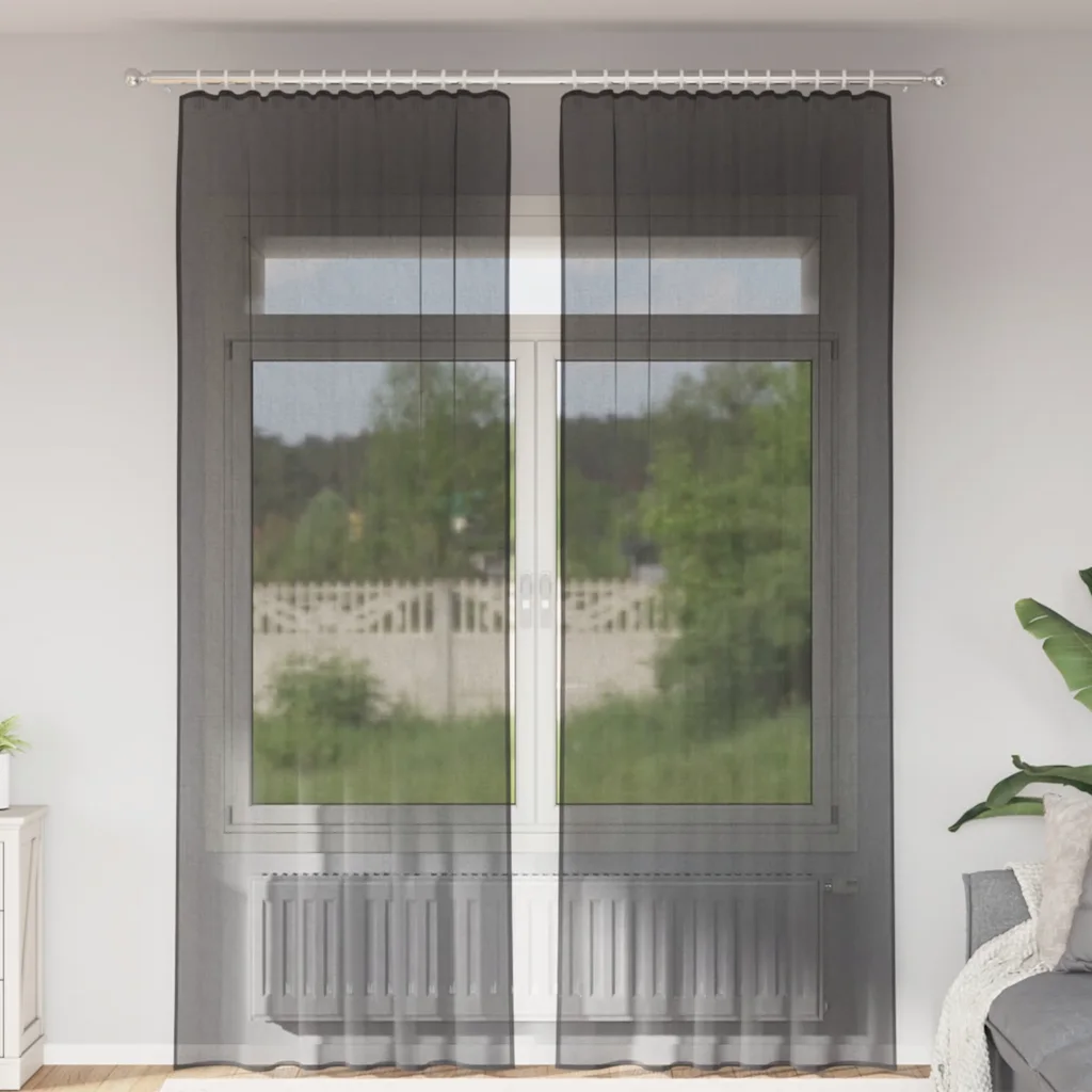 Naudi hästi valgustatud ruumi ilma karmi pimestamiseta nende mustade poolläbipaistvate voile kardinate komplektiga. Õhuke kangas laseb loomuliku valguse sisse, samal ajal varjates otsese pilgu ja lisades aknale kerge, modernse ilme. Tänu vardatasku süsteemile on kardinad kiiresti paigaldatavad eri tüüpi eluruumidesse.