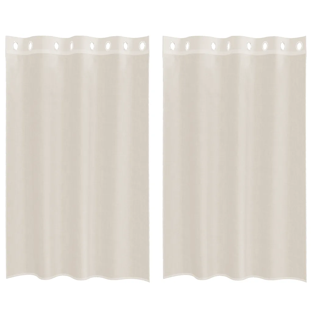 Kui soovid akendele lahendust, mis laseb valguse tuppa, kuid pehmendab pimestavat päikest, on need kreemjasvalged voile kardinad praktiline valik. Vastupidav polüesterkangas, lihtne rõngastega kinnitus ja kahest paneelist koosnev komplekt pakuvad tasakaalu funktsionaalsuse ning tagasihoidliku, neutraalse välimuse vahel.
