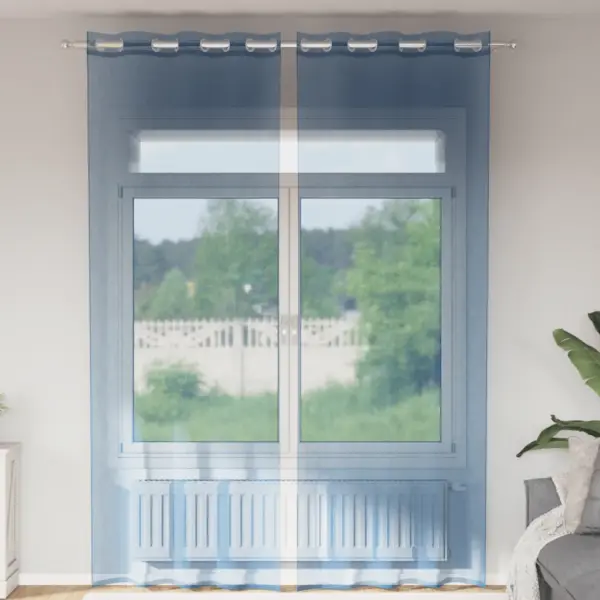 - 2 x voile-kardin, sügavsinine, mõõdud 140 x 260 cm, kummalgi 8 rõngast riputamiseks