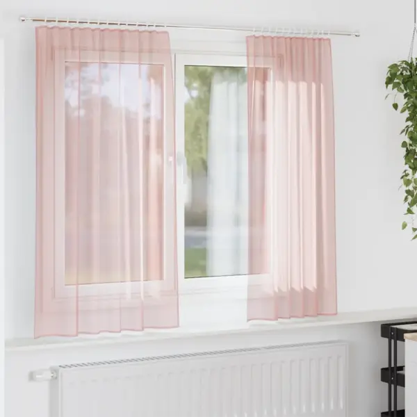 - 2 x roosa voile-kardin, mõõtmetega 140 x 175 cm (laius x kõrgus)