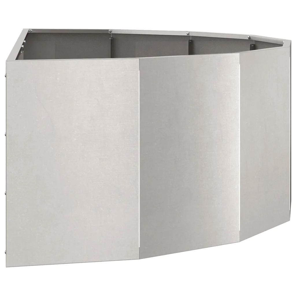 See poolringikujuline roostevabast terasest taimekast aitab luua aias, terrassil või rõdul selgeid vorme ja modernset ilmet. Hõbedane metallpind sobitub hästi nii kivipindade kui puitterrassiga, pakkudes nähtavat ja stabiilset kohta lilledele ning põõsastele. Tänu kompaktsetele mõõtmetele 120 x 60 x 35 cm sobib kast hästi seina äärde, rõdupiirde juurde või aianurga esiletõstmiseks.