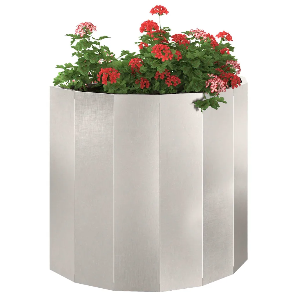 Hõbedane poolringikujuline roostevabast terasest taimekast ühendab vastupidava konstruktsiooni ja neutraalse kaasaegse välimuse. See on praktiline valik, kui soovid oma rõdu, terrassi või aianurga taimedele selget ja stiilset istutuskohta.