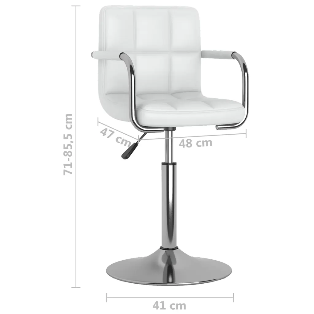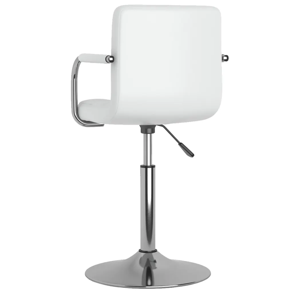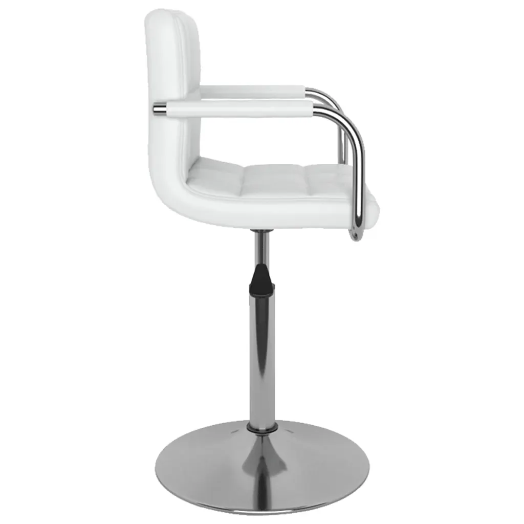 Need valged pöörlevad söögitoolid pakuvad mugavat ja kohandatavat istekohta söögituppa või kööki. Kunstnahast polster koos vahutäidisega tagab pehme istumise, samas kui kroomitud terasraam lisab stabiilsust ja kaasaegse ilme.