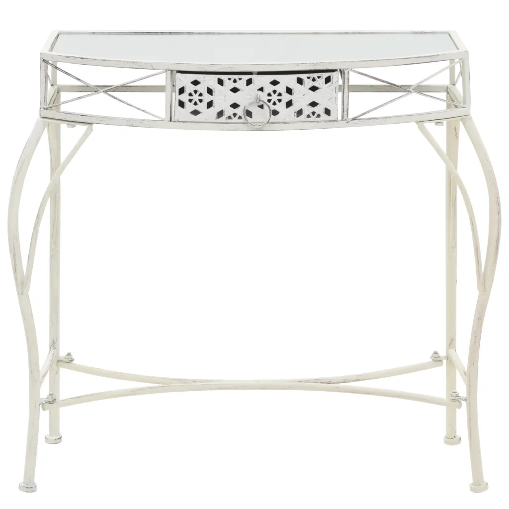 See lisalaud ühendab dekoratiivse välimuse ja praktilise kasutuse, pakkudes nii pinda lemmikesemete esitlemiseks kui ka lisaruumi sahtlis. Valge metallraami ja klaaspinna kooslus sobib paljude sisekujundustega ning kompaktne suurus teeb laua heaks valikuks nii väiksematesse kui suurematesse ruumidesse.