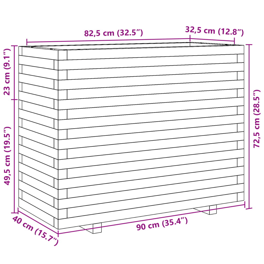 - Sisemõõdud 82,5 x 32,5 x 67 cm (pikkus x laius x kõrgus) annavad hea ülevaate tegelikust istutusmahust ja aitavad planeerida mulla ning taimede kogust.