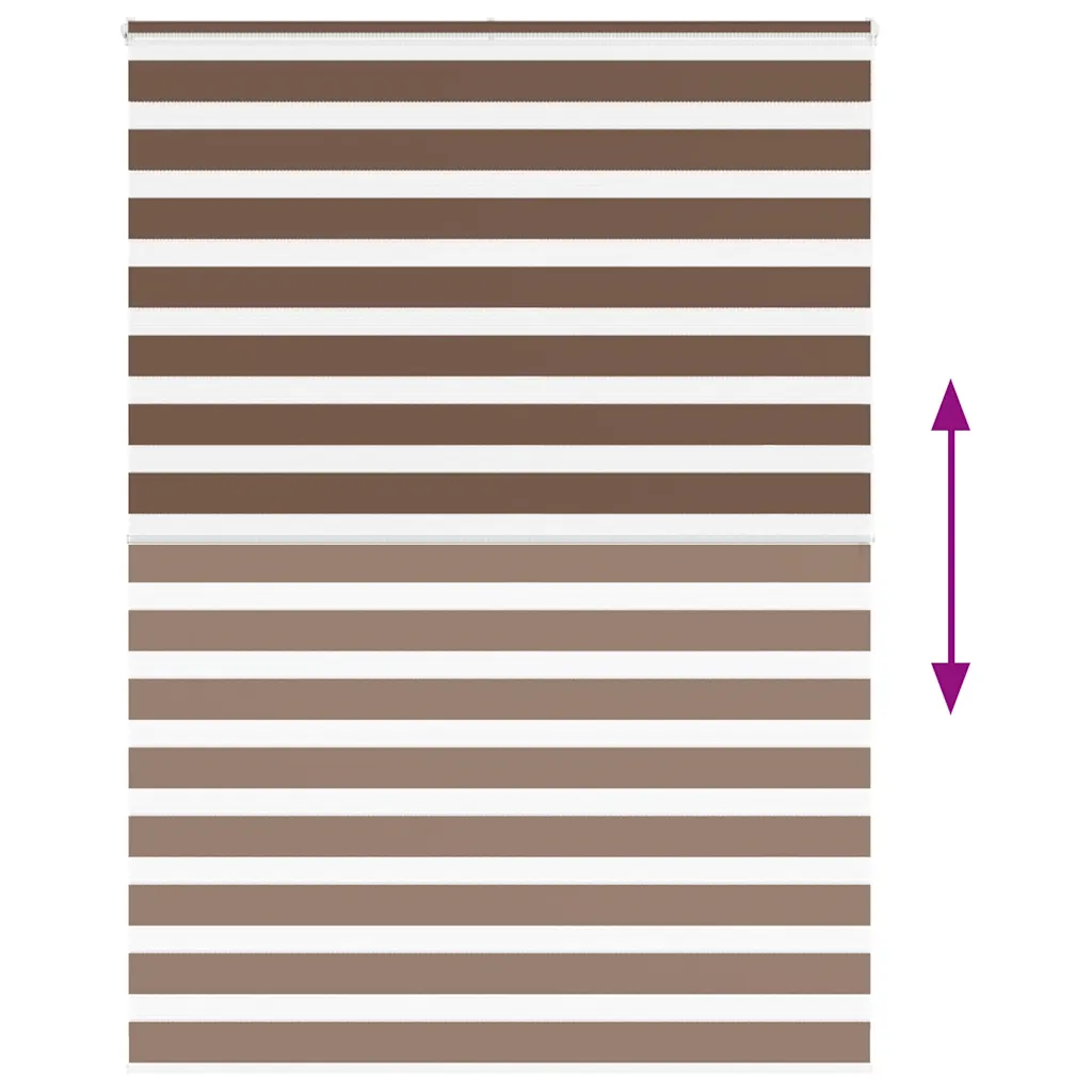 See pruun sebraruloo mõõduga 165 x 200 cm ühendab privaatsuse ja valguse juhtimise ühes lahenduses. Kahekihiline vahelduvate läbipaistvate ja läbipaistmatute ribadega polüesterkangas võimaldab ruumi kiiresti muuta poolläbipaistvast kuni peaaegu pimedaks, sobides hästi elutuppa, magamistuppa või kontorisse.