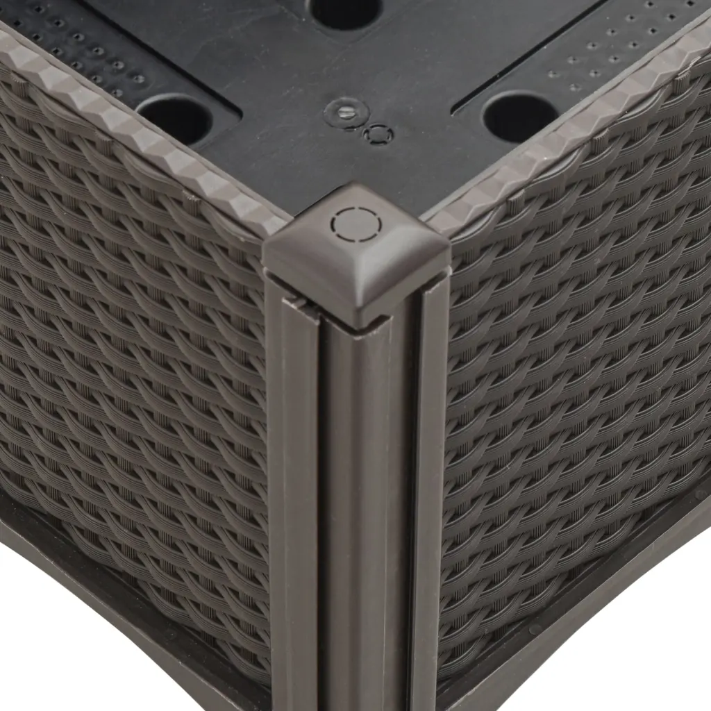 - Pruun PP taimekast rotangiviimistlusega, mõõtmetega 160 x 40 x 142 cm (pikkus x laius x kõrgus)