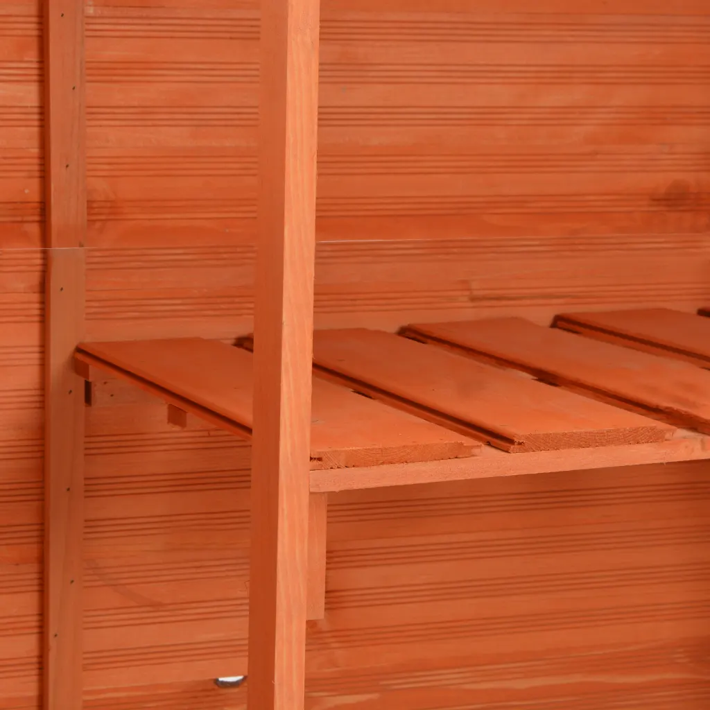 See puidust aiakuur ühendab kompaktse mõõdu ja funktsionaalse siselahenduse, pakkudes ruumi erinevate tööriistade ja tarvikute hoiustamiseks. Veekindla kangast katusega katus aitab hoida kuuris olevad esemed kuivana, samal ajal kui riiulid ja topeltuksed muudavad hoiustamise ja ligipääsu korraldatuks. Kui vajad praktilist ja lihtsa välimusega lahendust aiahooldusvahendite korrastamiseks, on see kuur sobiv valik.