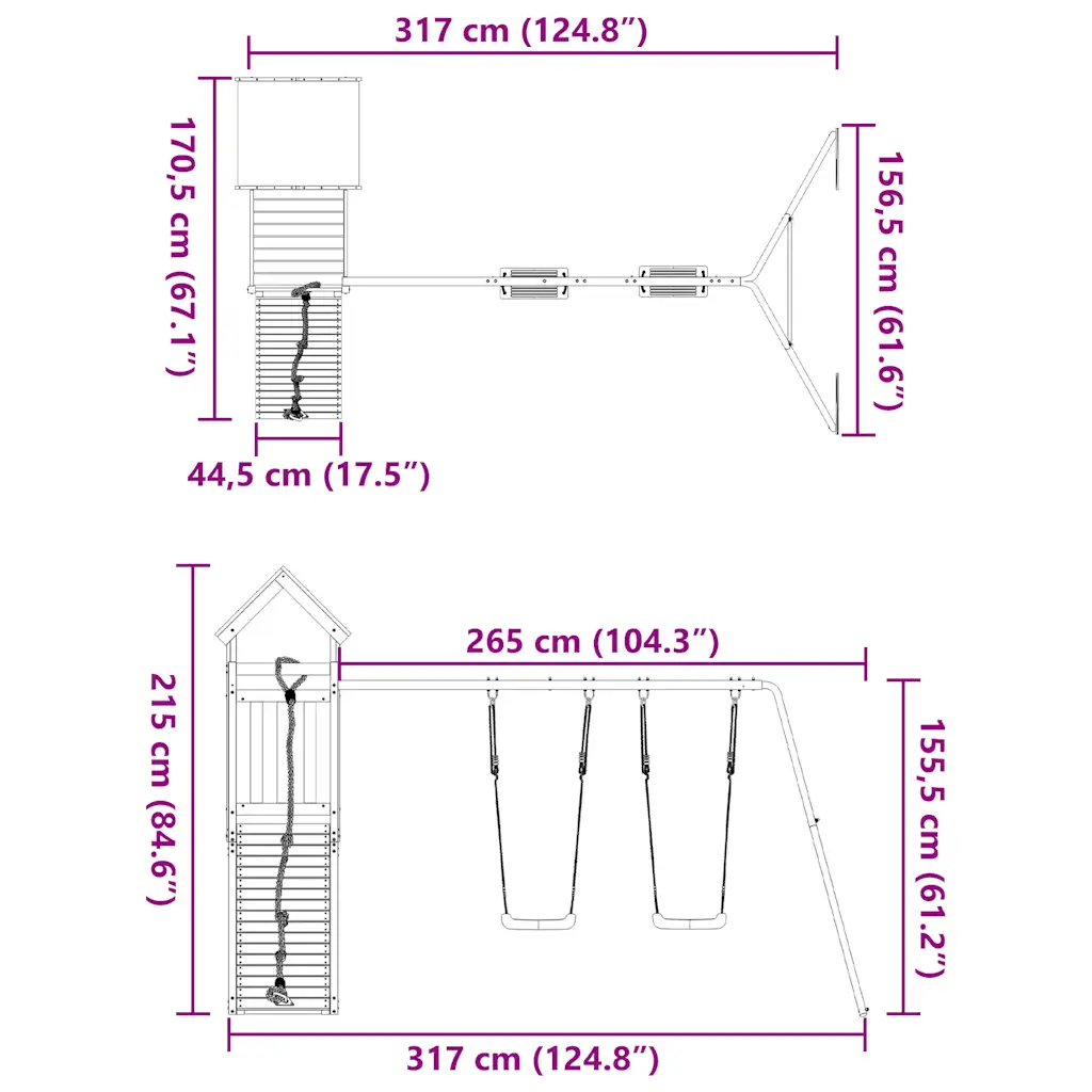 - Stabiilne puidust mängutorn – puidust raam ja A-kujulised jalad aitavad hoida lastekiike tasakaalus ning tagavad kindla aluse ronimis- ja mängutegevustele.