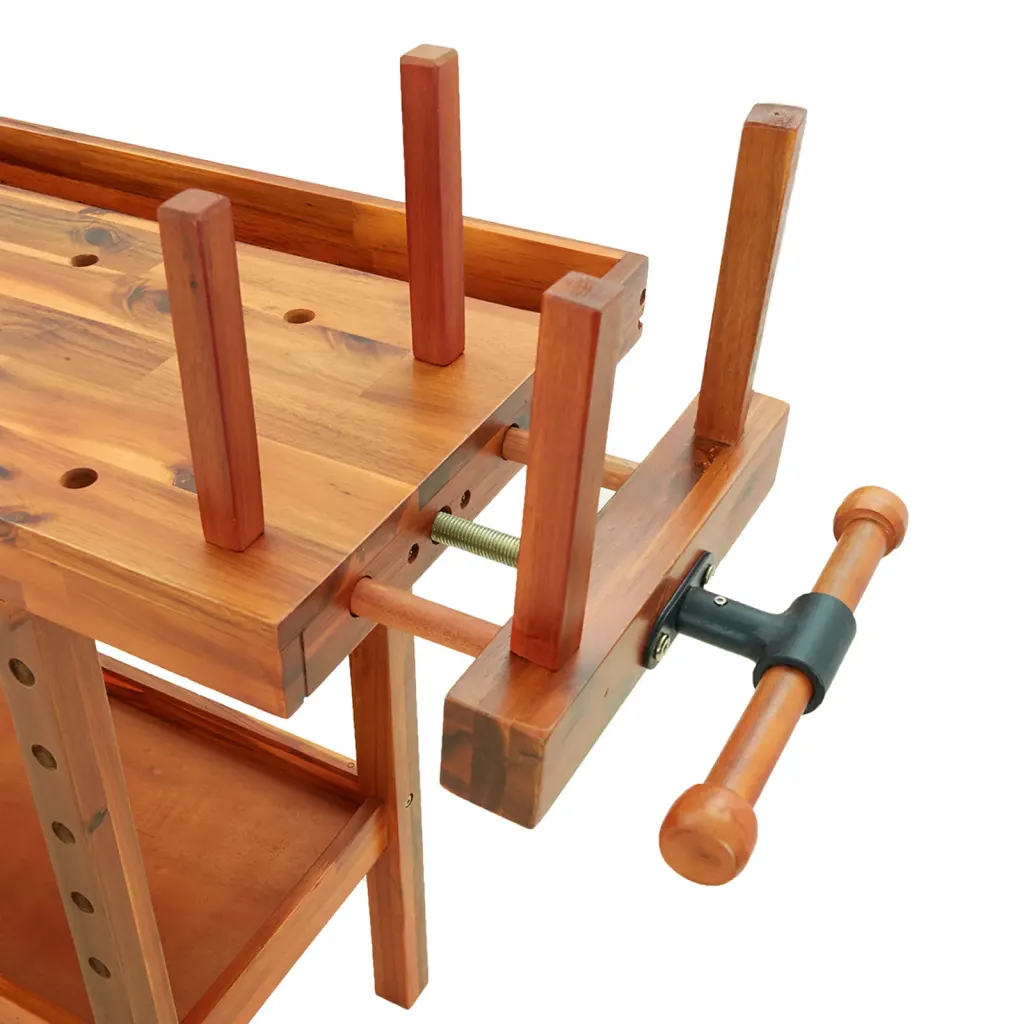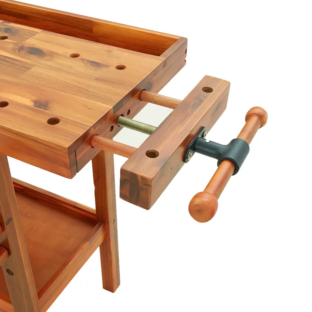 - Tugev akaatsiapuidust konstruktsioon – tööpink on valmistatud vastupidavast akaatsiapuidust ja vineerist, mis taluvad igapäevast kasutust ja tagavad pika kasutusea.