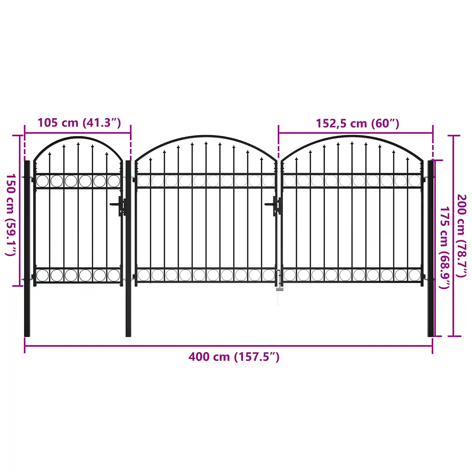 Turvaline pulbervärvitud aiavärav kaarja ülaosaga teie aiale