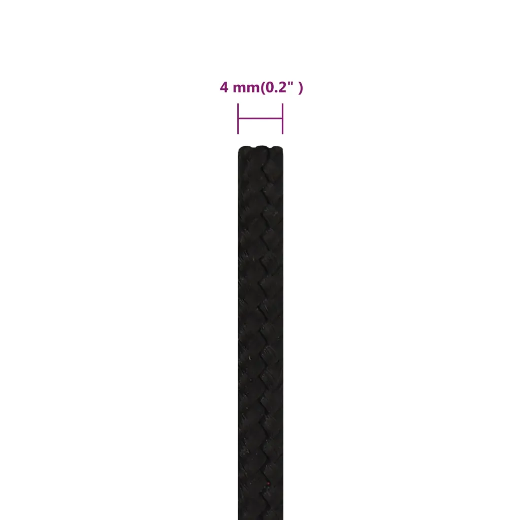 See mustast polüestrist punutud töököis läbimõõduga 4 mm ja pikkusega 100 m sobib erinevateks üldotstarbelisteks töödeks kodus, aias ja töökojas. Vastupidav materjal talub hästi UV-kiirgust, kulumist ja mitmeid kemikaale, tagades köiele pika kasutusea nii sise- kui ka välistingimustes.